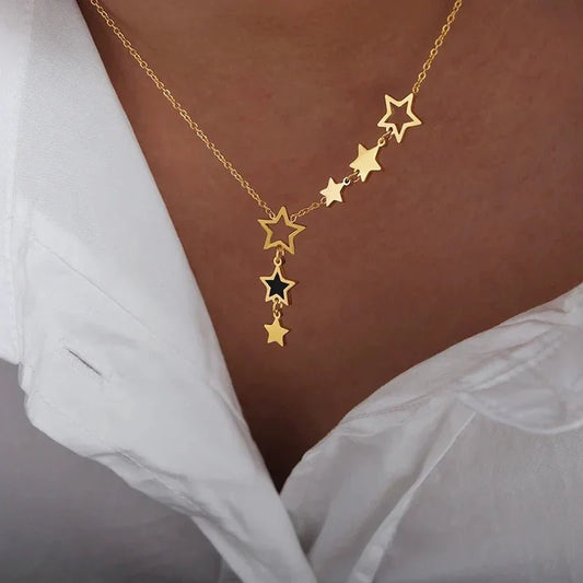 Veinci Shooting Star Celestial Necklace – Delicate Gold‑Stainless Steel Pendant